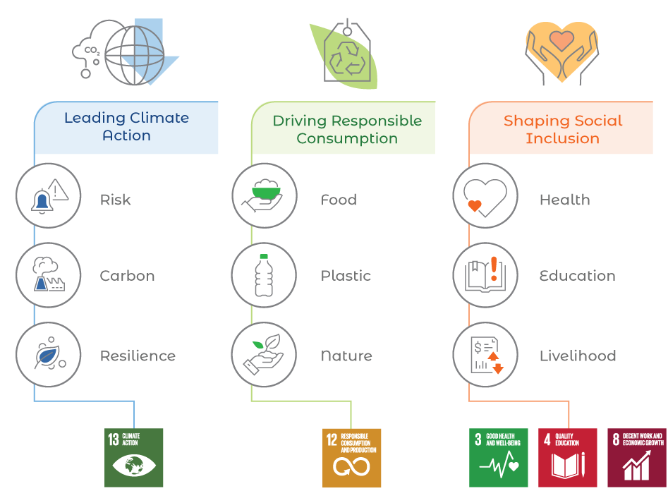 Asia faces a host of challenges that could put the growth and prosperity of our communities at risk, including climate change, environmental degradation, resource scarcity, and rising social inequality. Addressing sustainability has become imperative, and our scale and close relationship with our communities mean that we’re in a unique position to help government efforts to address these challenges.